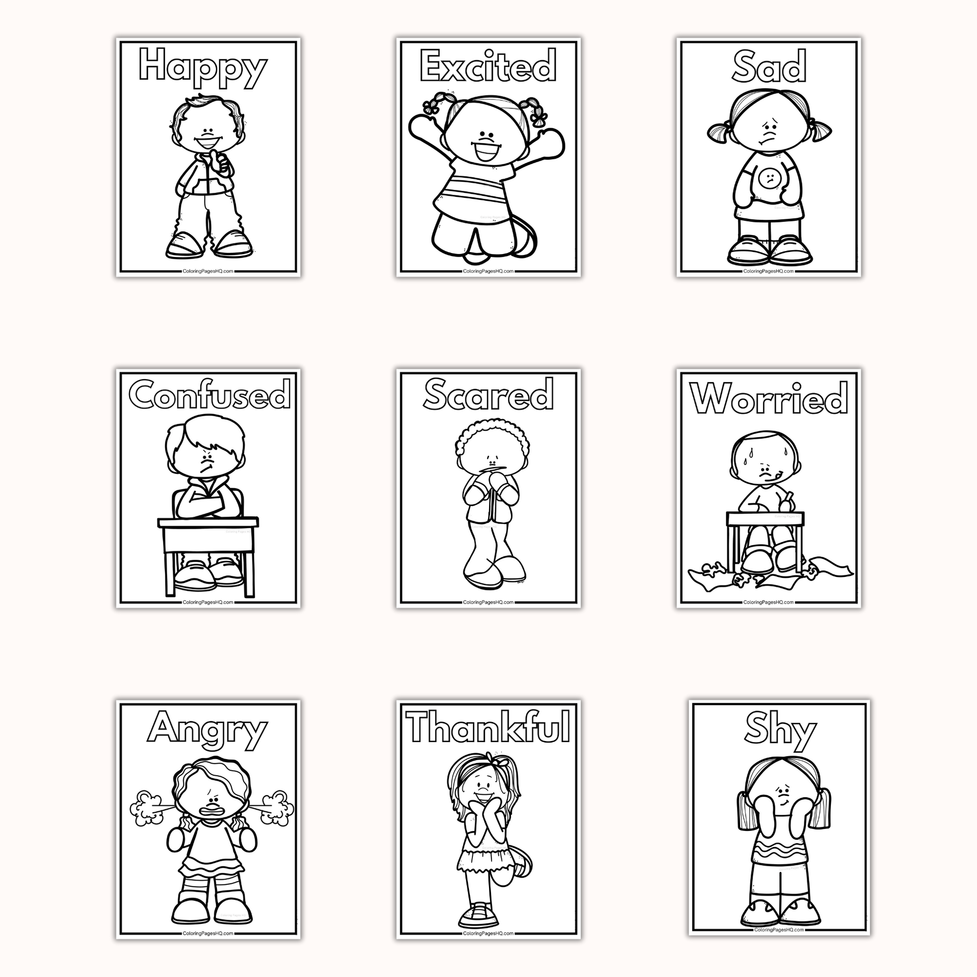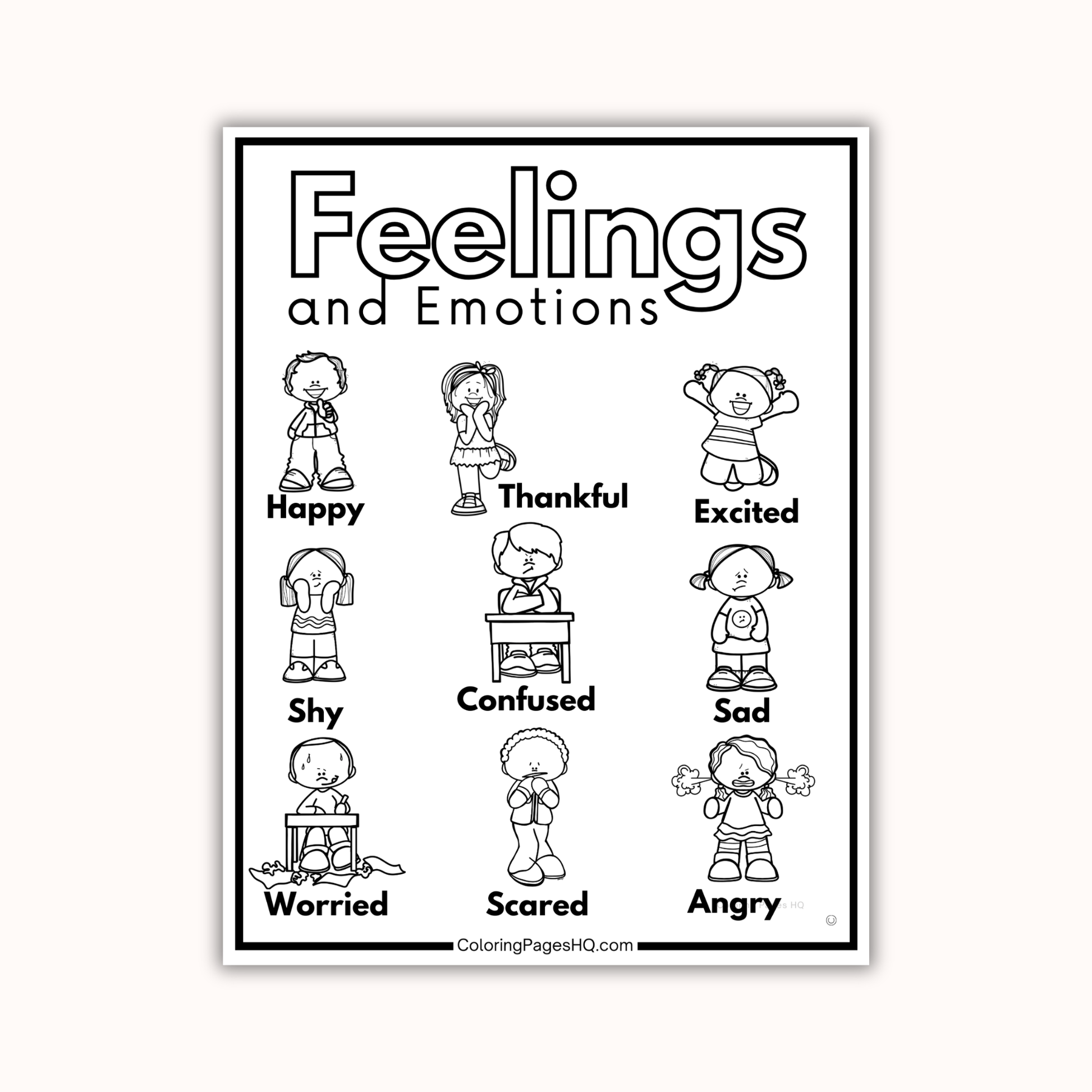 Help kids recognize and express their emotions with our Feelings and Emotions Coloring Pages Set!